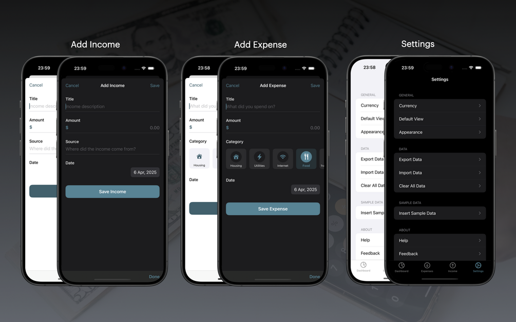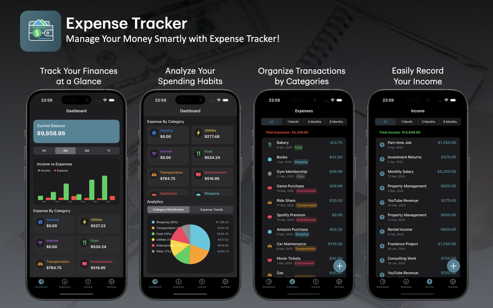 Expense Tracker is a simple yet powerful iOS app designed to help you effortlessly manage your daily income and expenses. Whether you want to track your monthly budget, monitor your spending habits, or plan future savings, this app is your personal finance companion right in your pocket!
