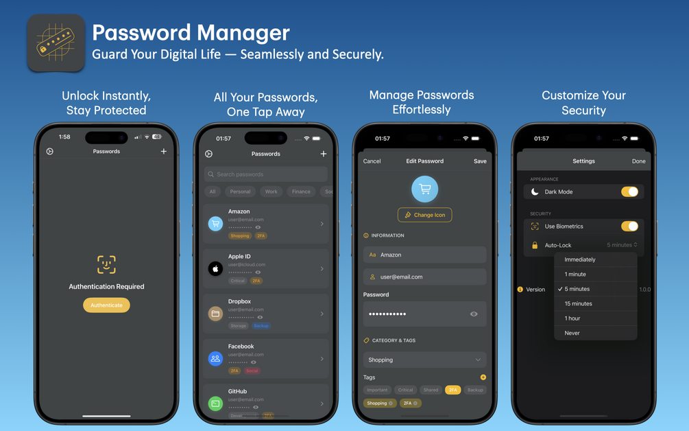 - β³ Auto-Lock Timer β customizable for ultimate security.